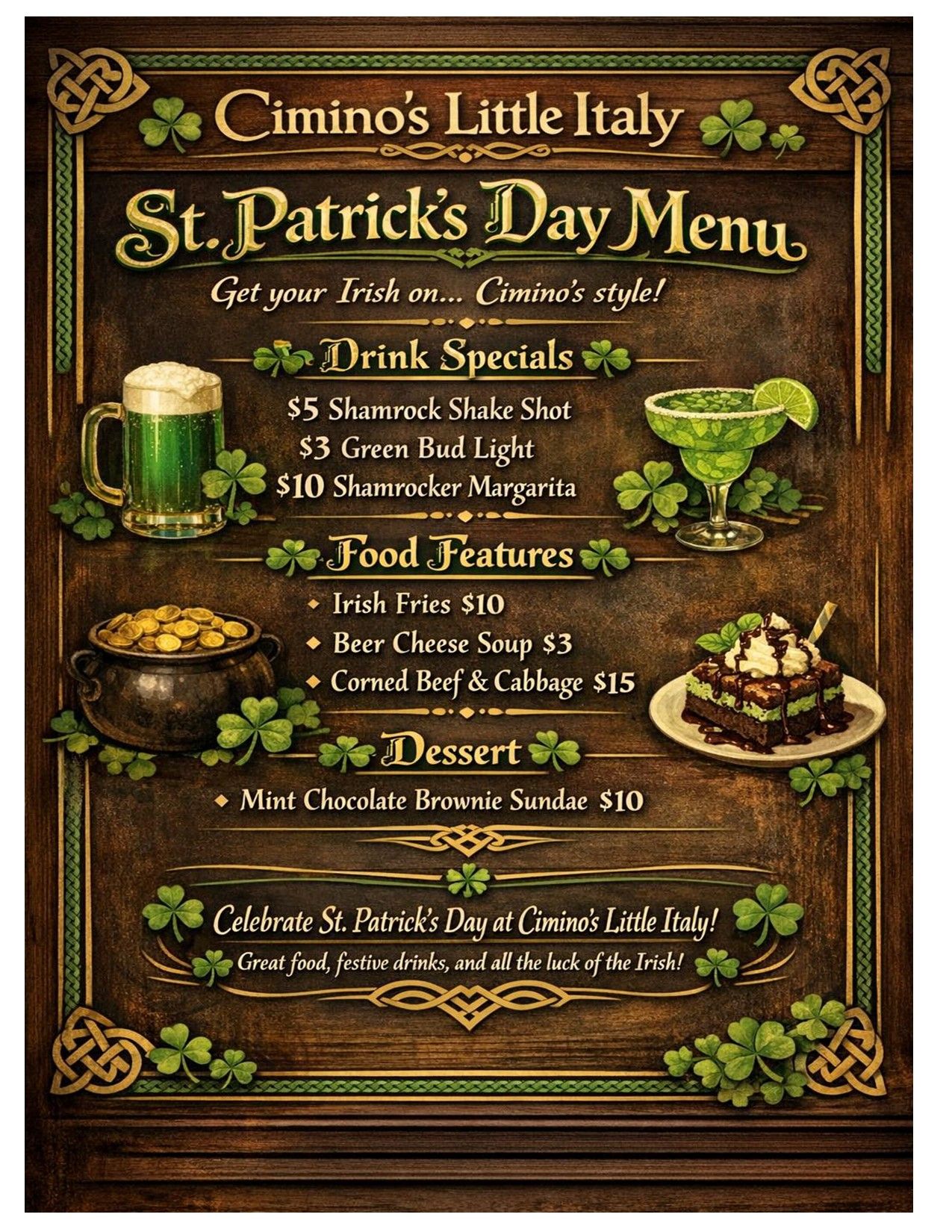 Cimino's Little Italy Full MenuLocally and Family Owned | We Deliver | Convenient On-Site Catering(815) 235-8700